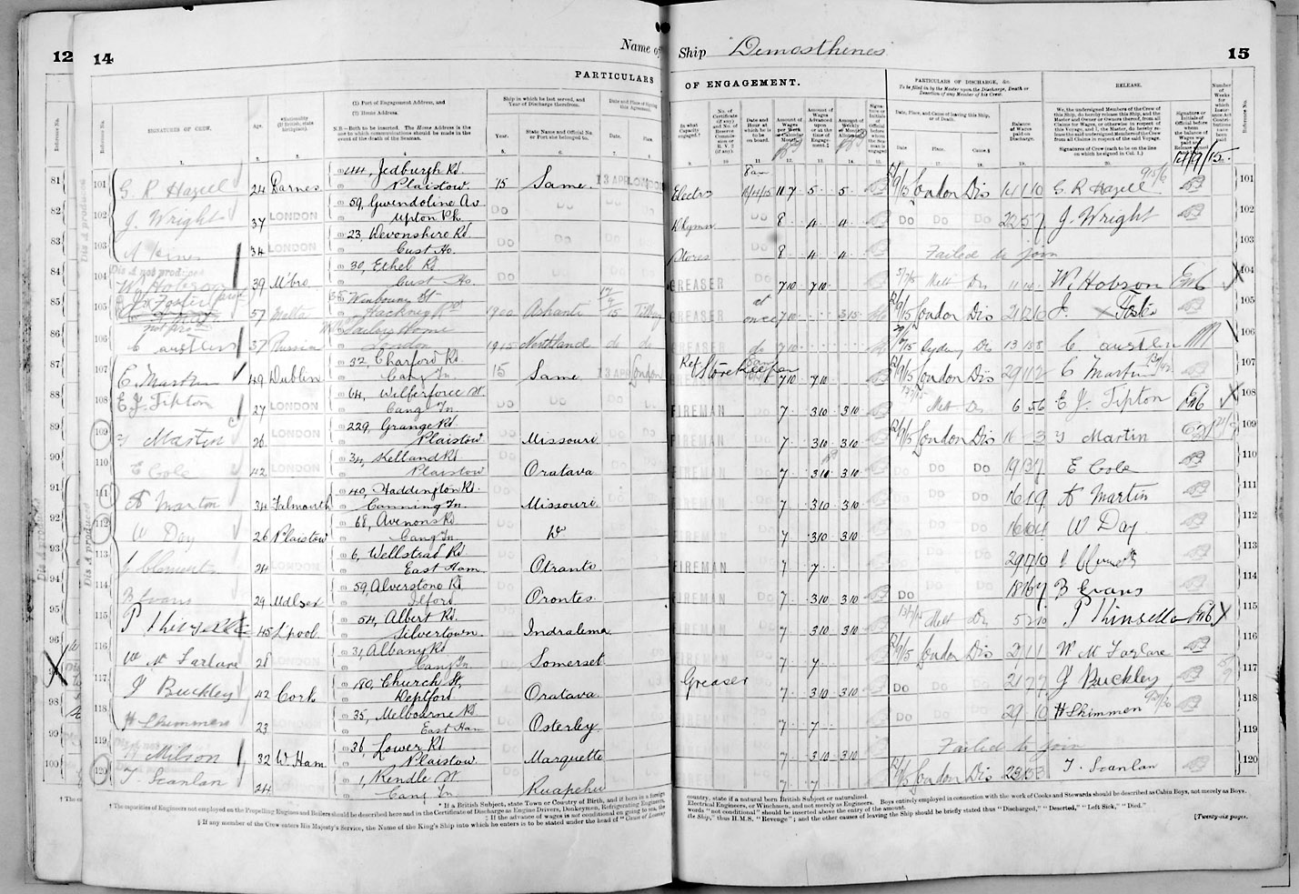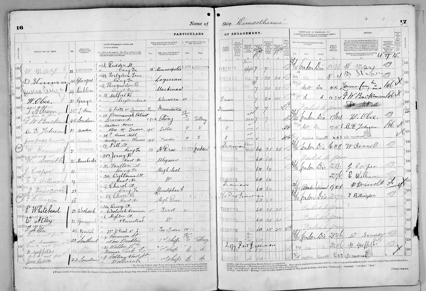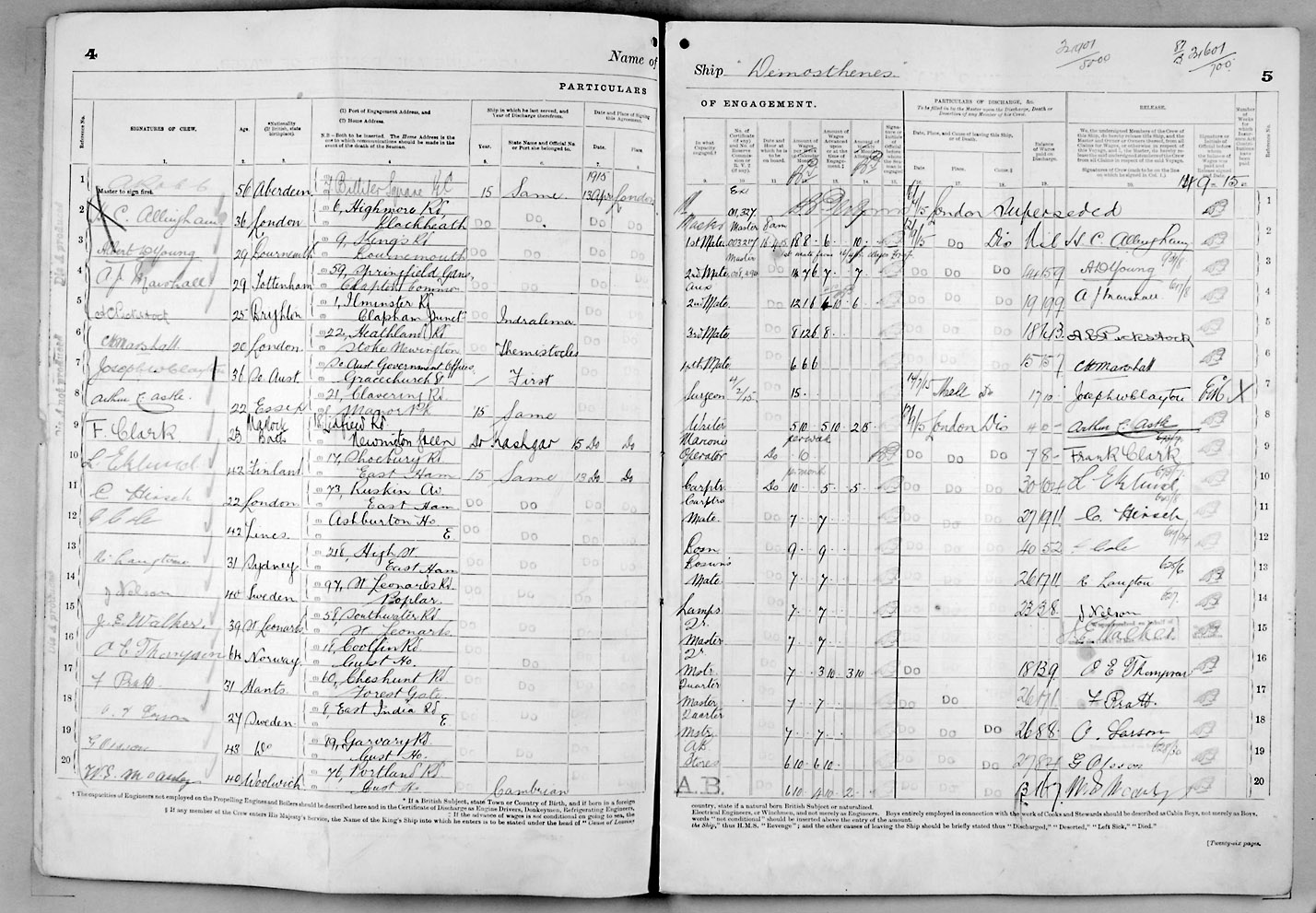 1915 crew list for the vessel 'DEMOSTHENES'