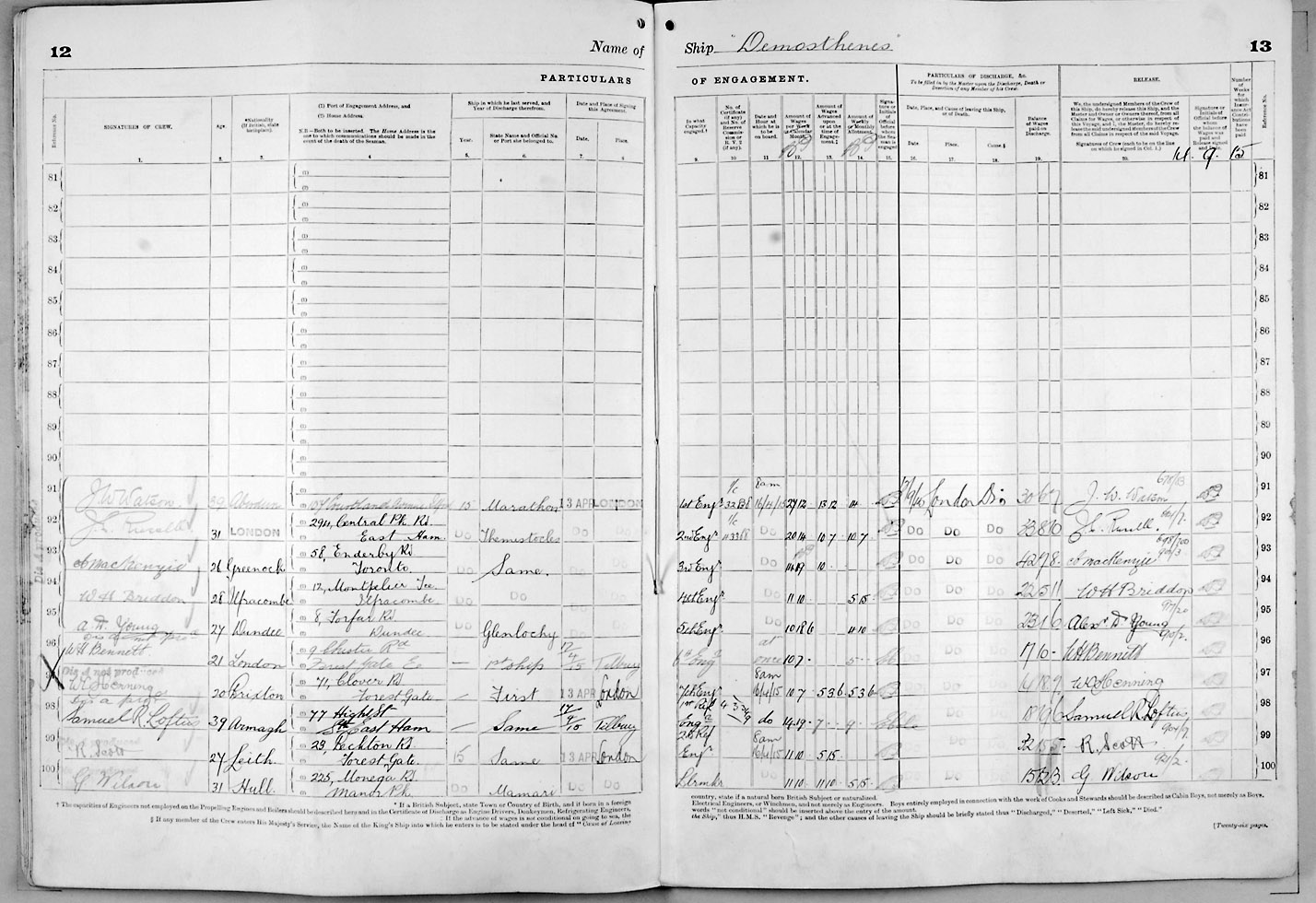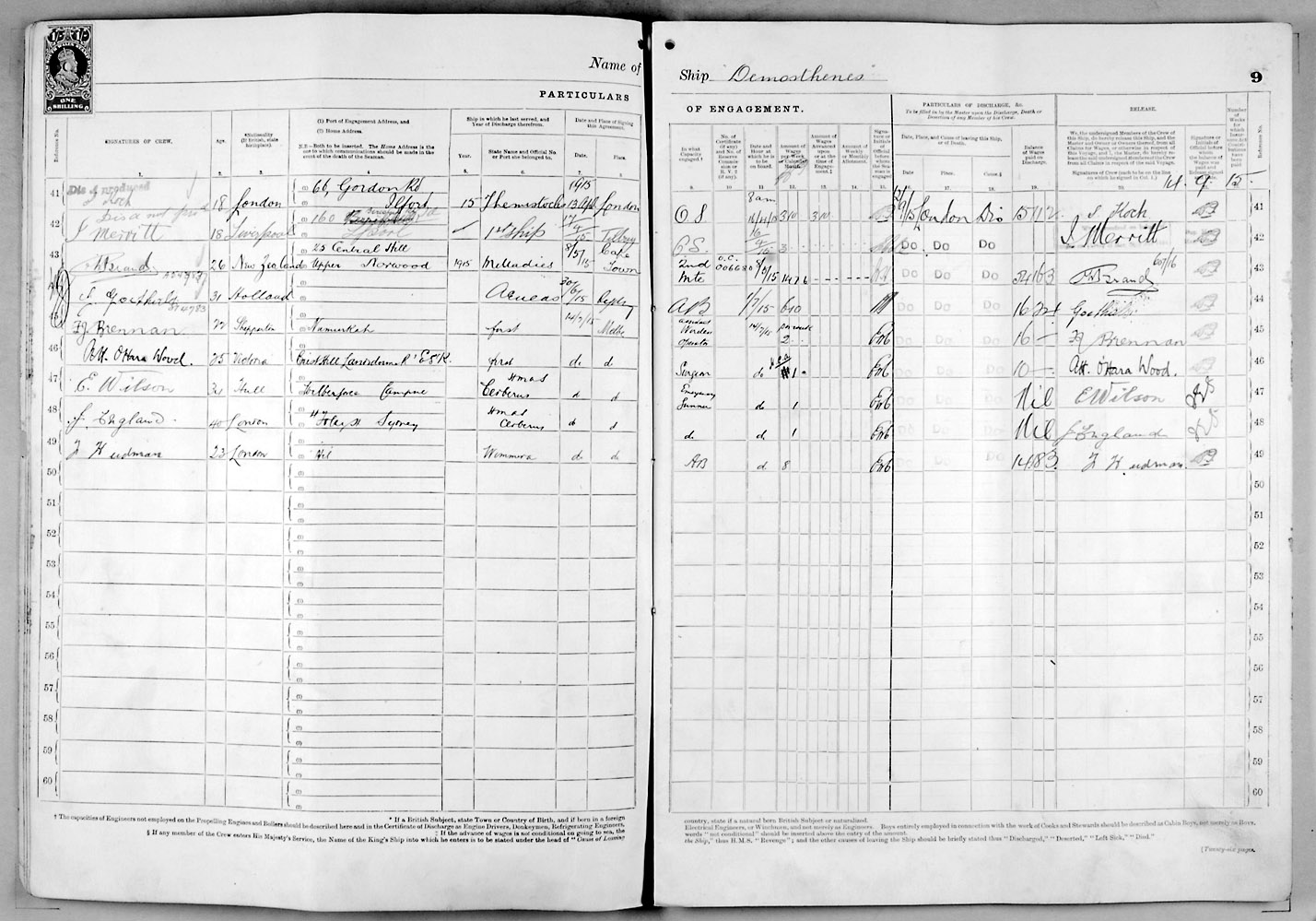 Crew list document for vessel 'DEMOSTHENES'