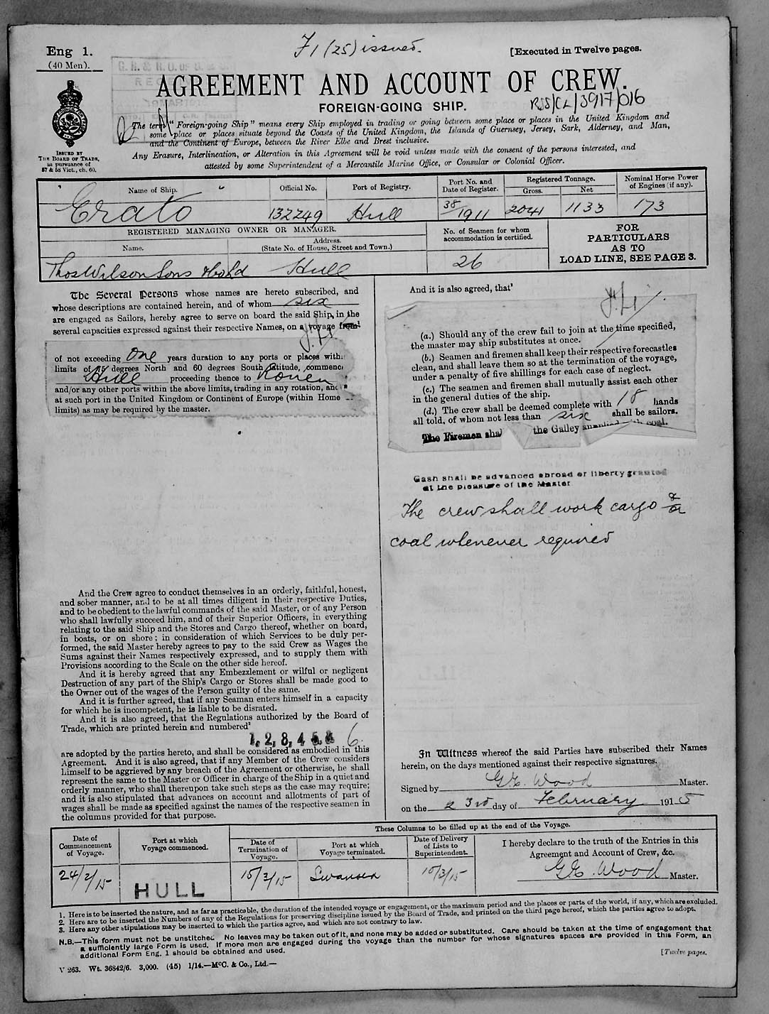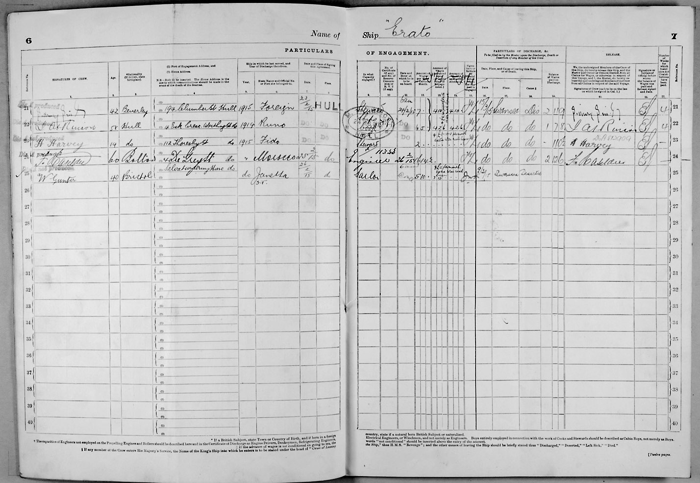 1915 crew list for the vessel 'ERATO'