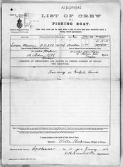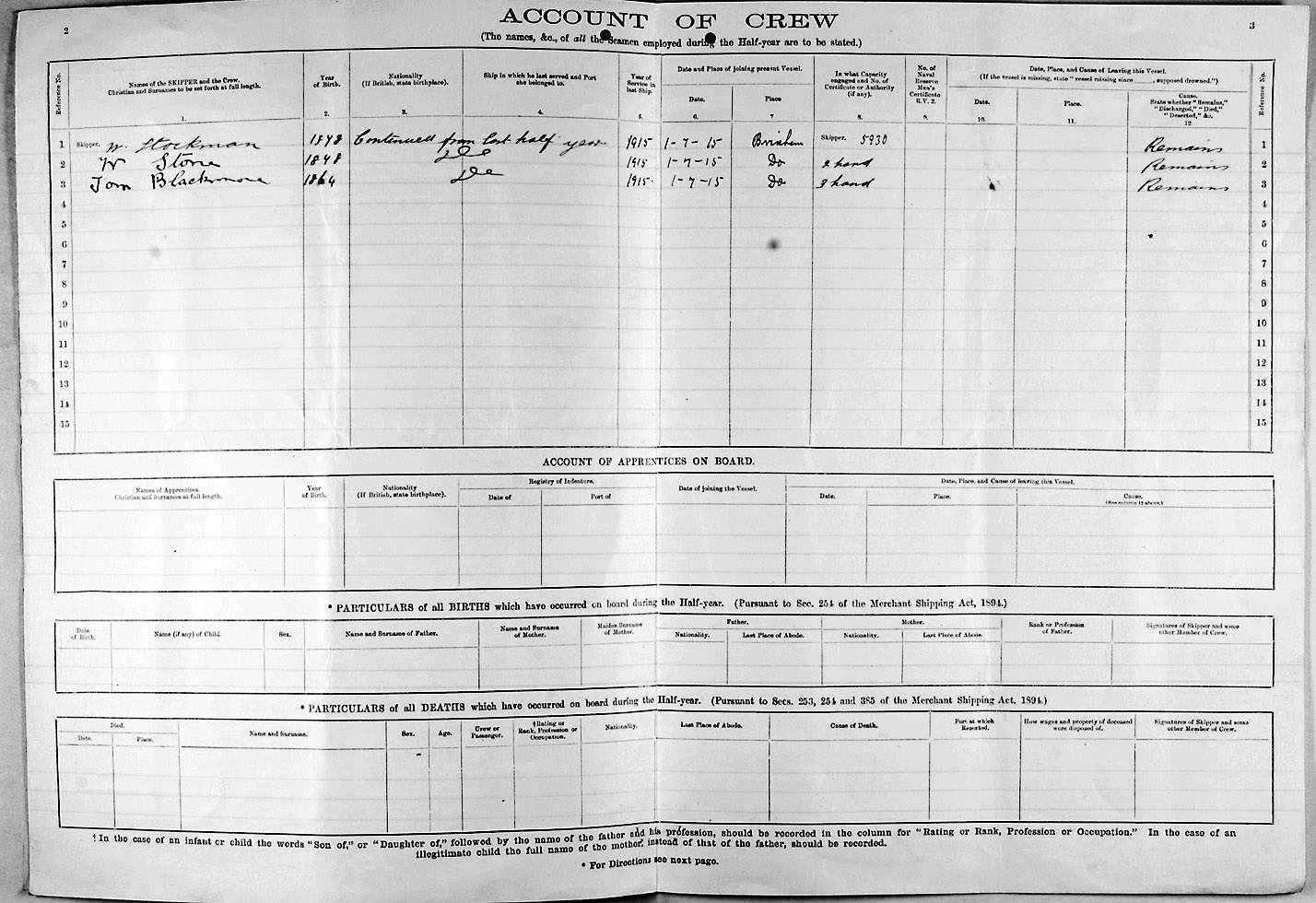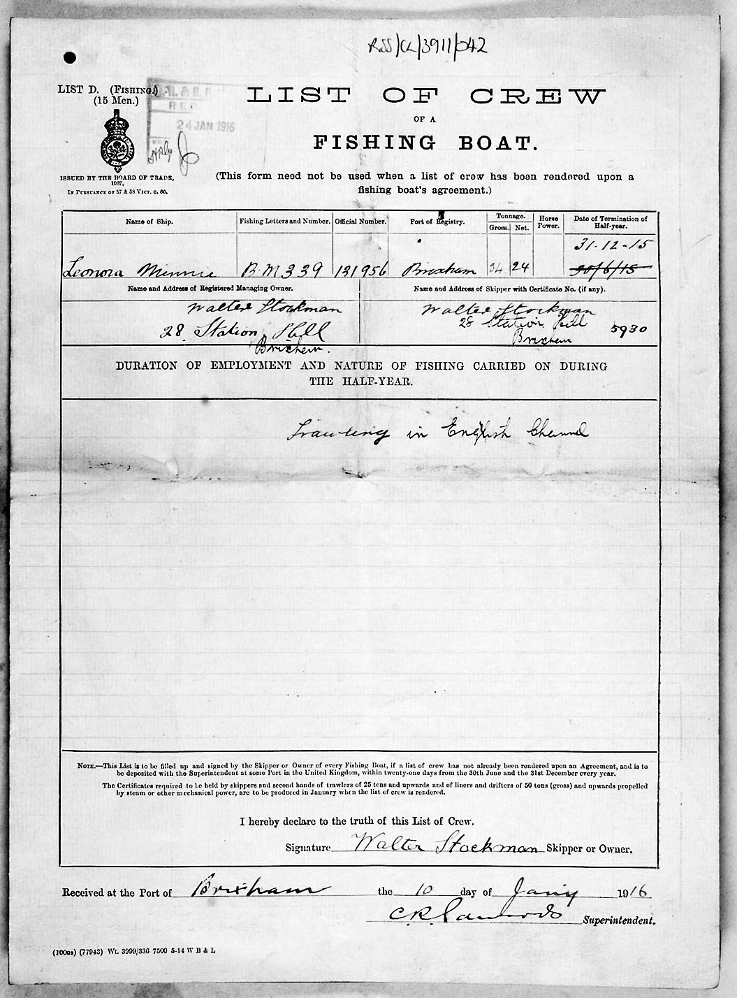 1915 crew list for the vessel 'LEONORA MINNIE'
