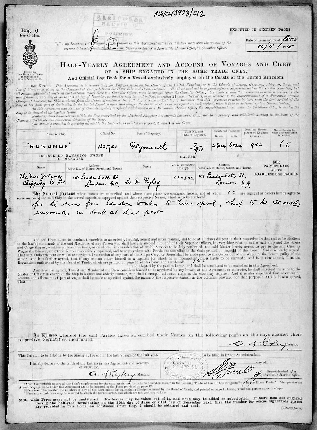 Crew list document for vessel 'HURUNUI'