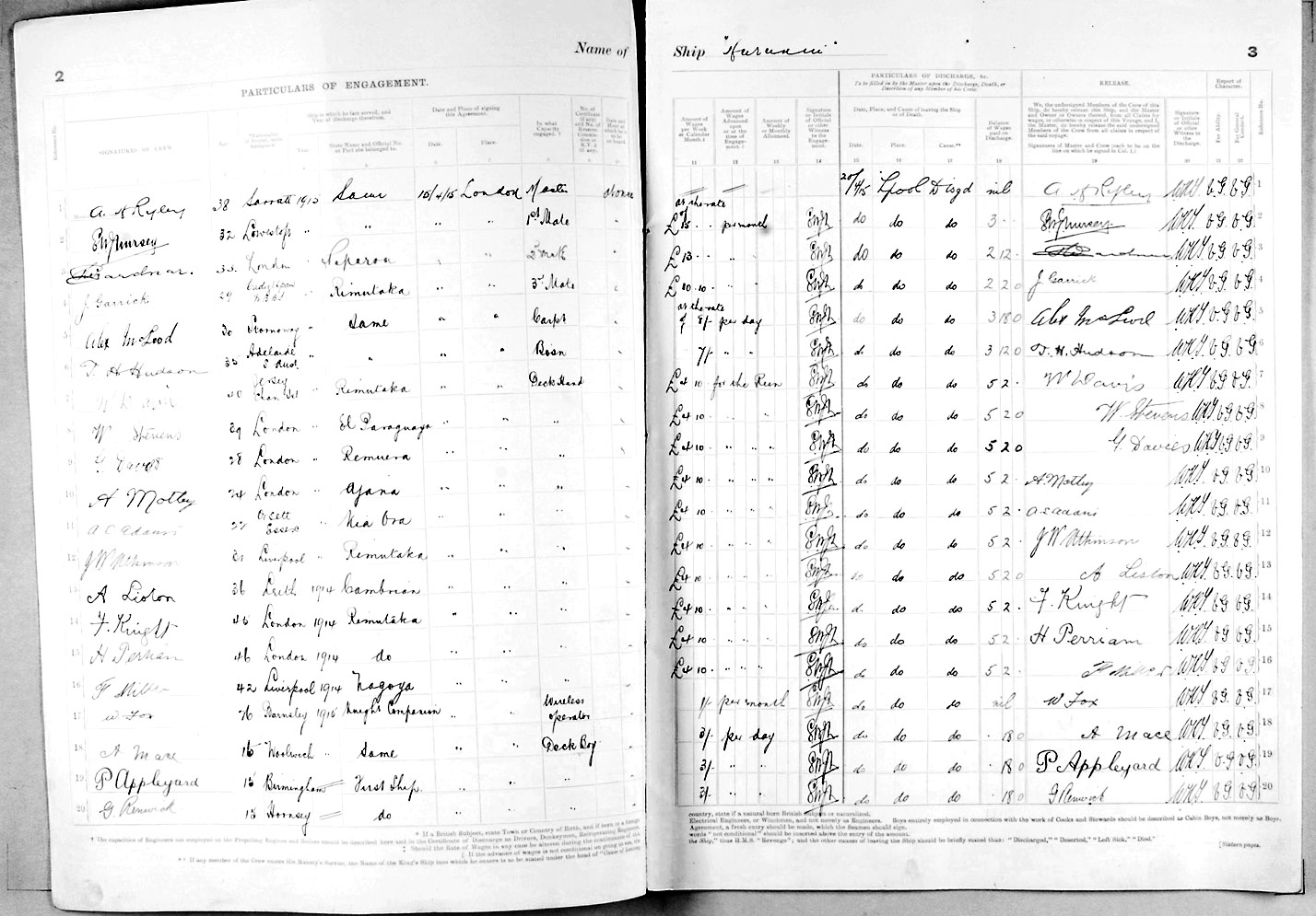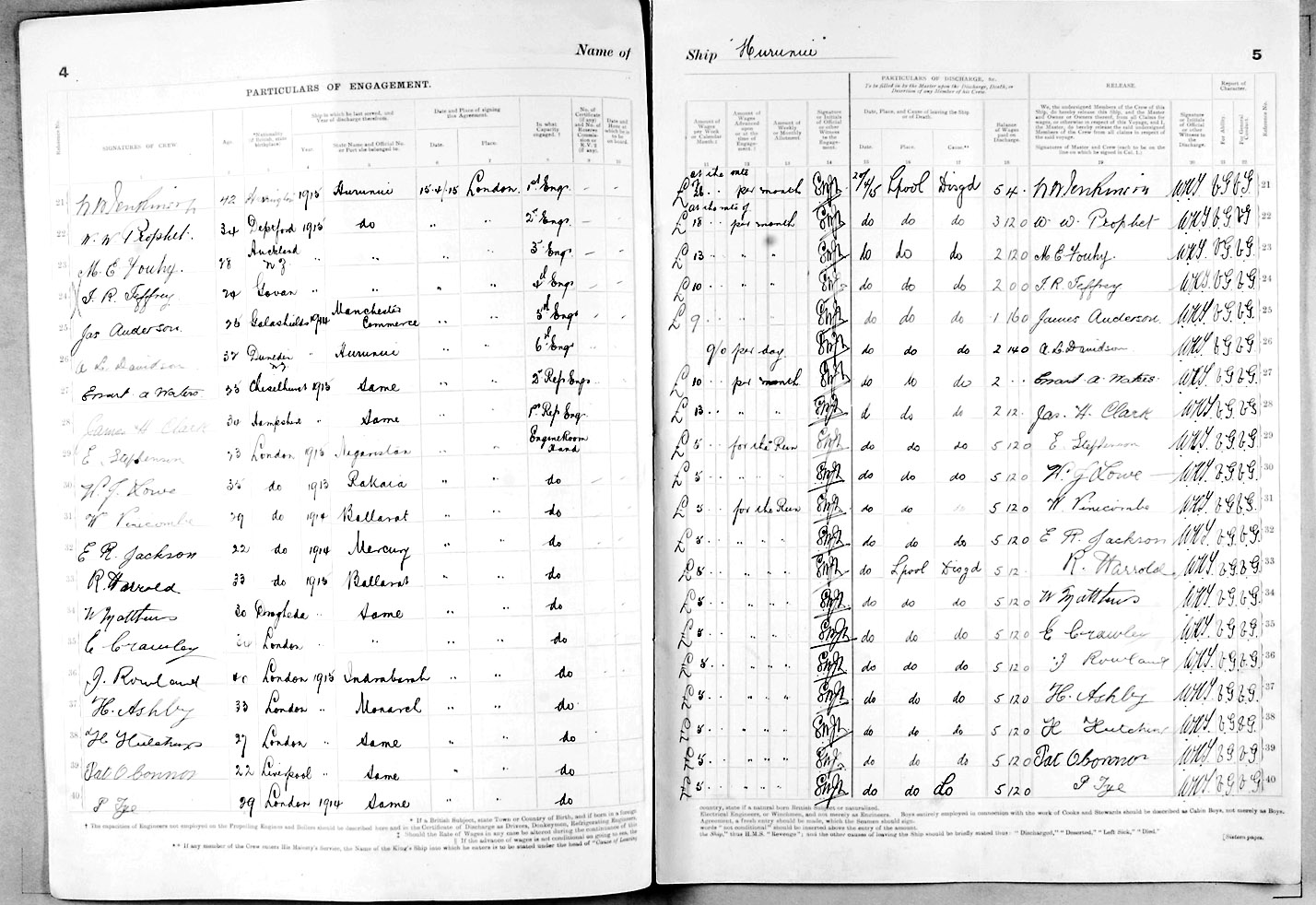 1915 crew list for the vessel 'HURUNUI'