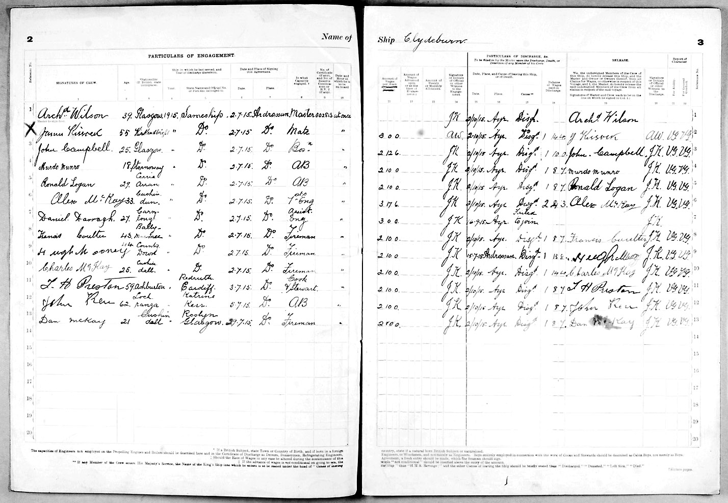 1915 crew list for the vessel 'CLYDEBURN'