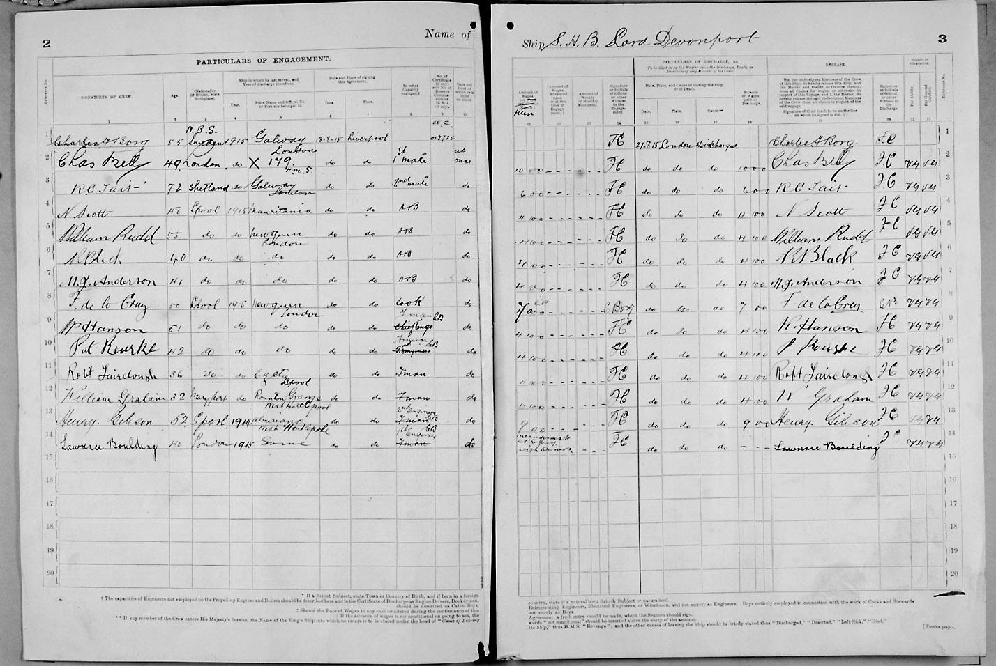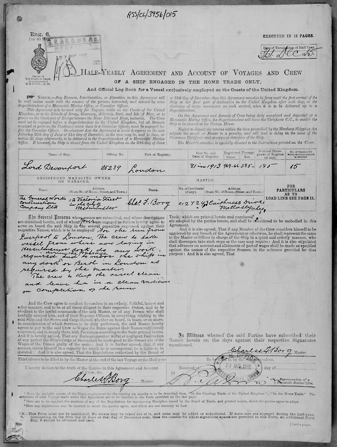 1915 crew list for the vessel 'LORD DEVONPORT'