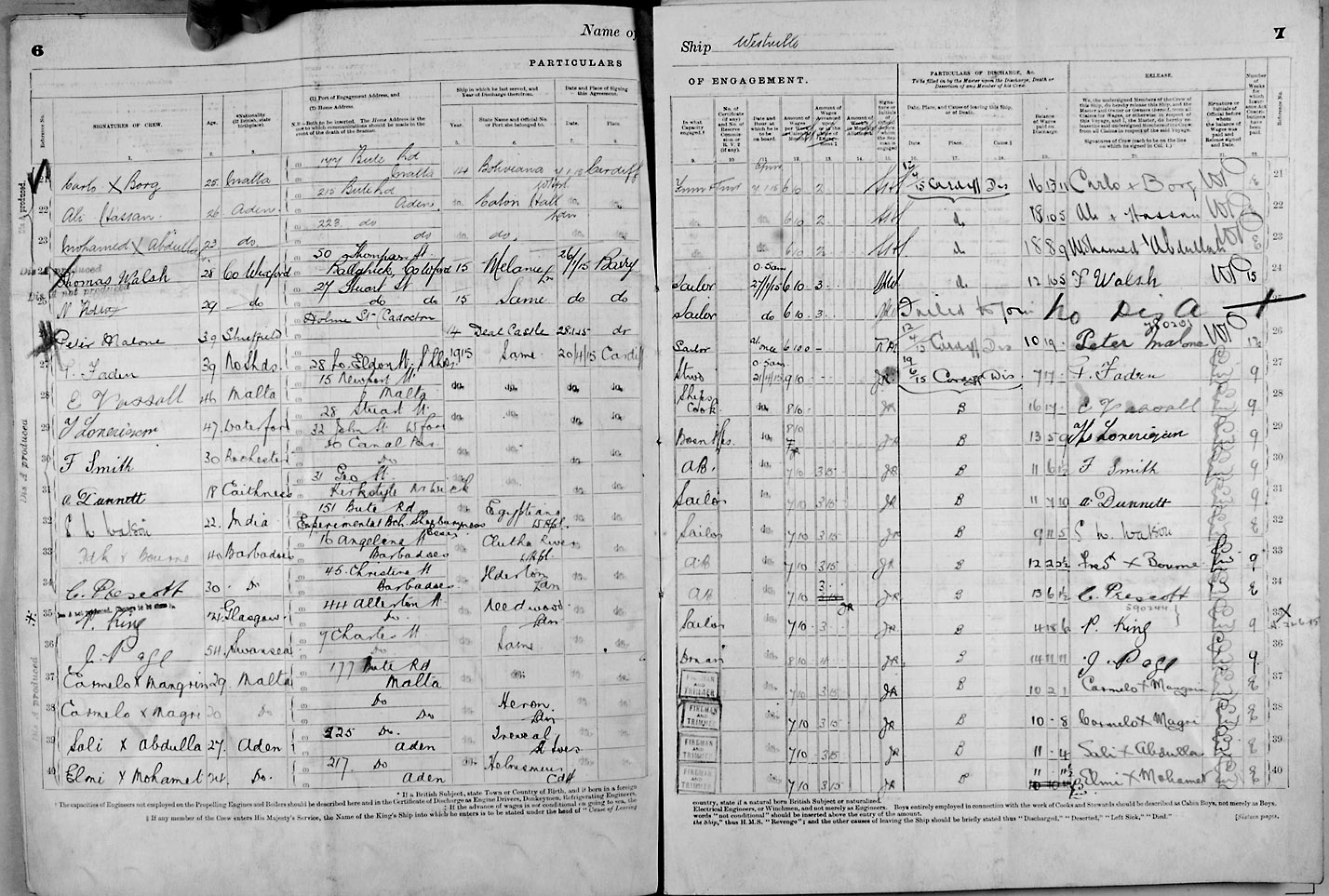 Crew list document for vessel 'WESTVILLE'
