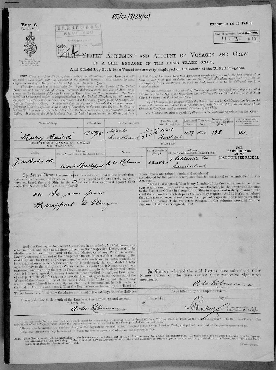 Already have a reader’s ticket for the Caird Library and Archive? Welcome back! You can view the catalogue record for this Crew List and click again to order it for viewing in the library.