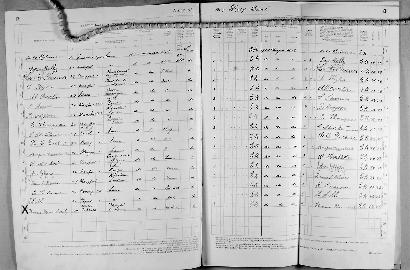 Crew list document for vessel 'MARY BAIRD'