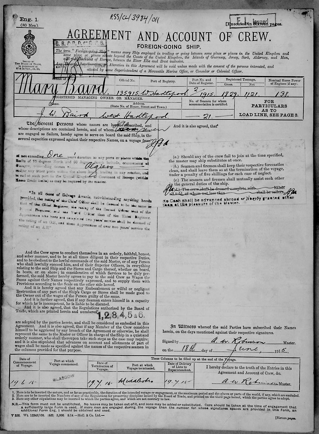 Already have a reader’s ticket for the Caird Library and Archive? Welcome back! You can view the catalogue record for this Crew List and click again to order it for viewing in the library.