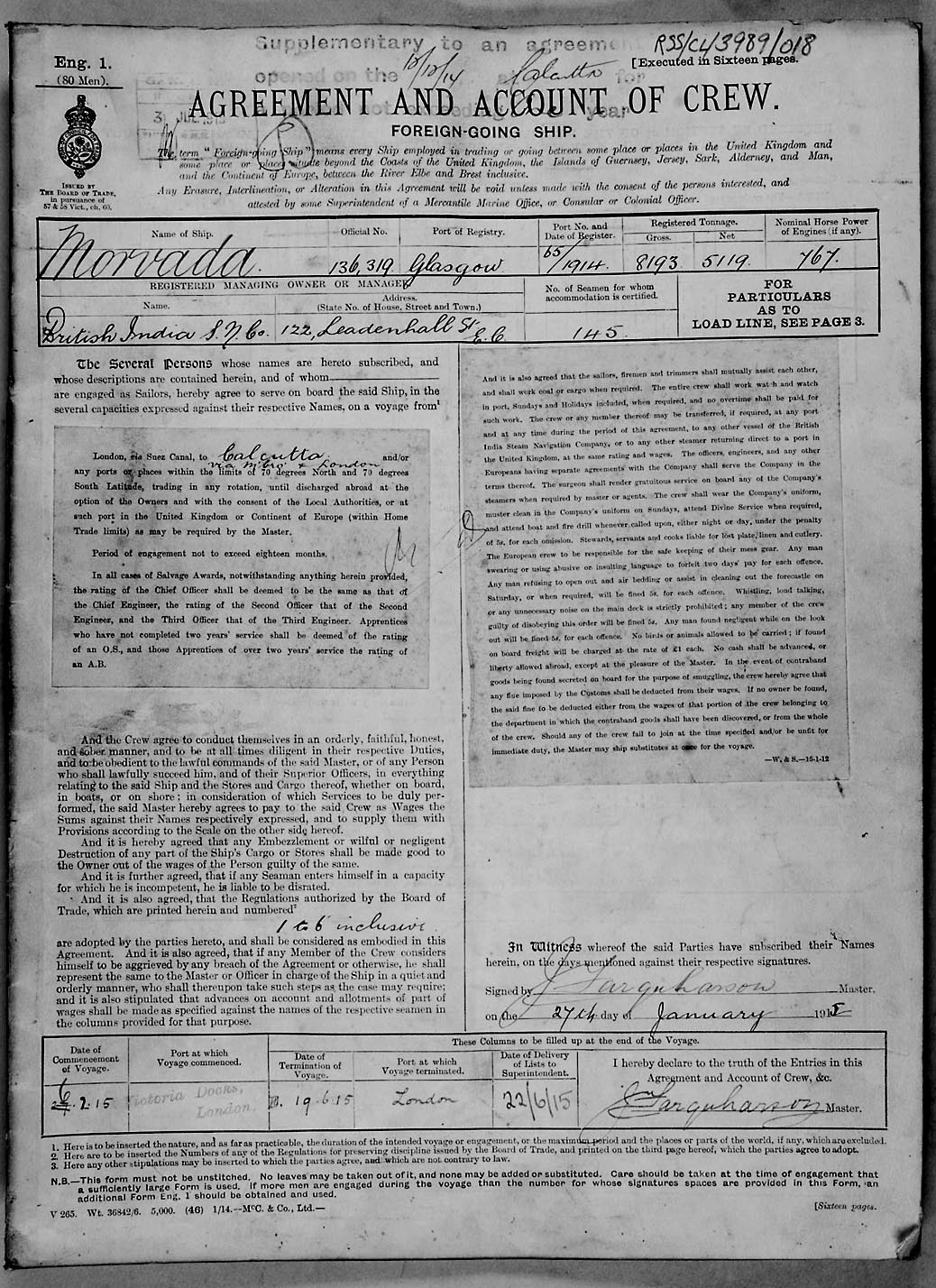 1915 crew list for the vessel 'MORVADA'