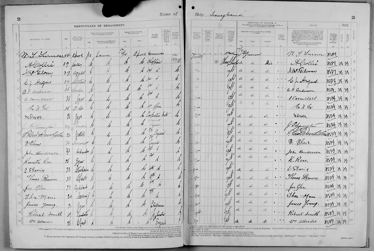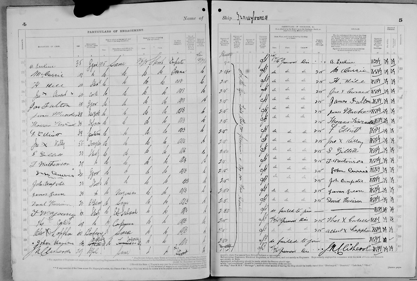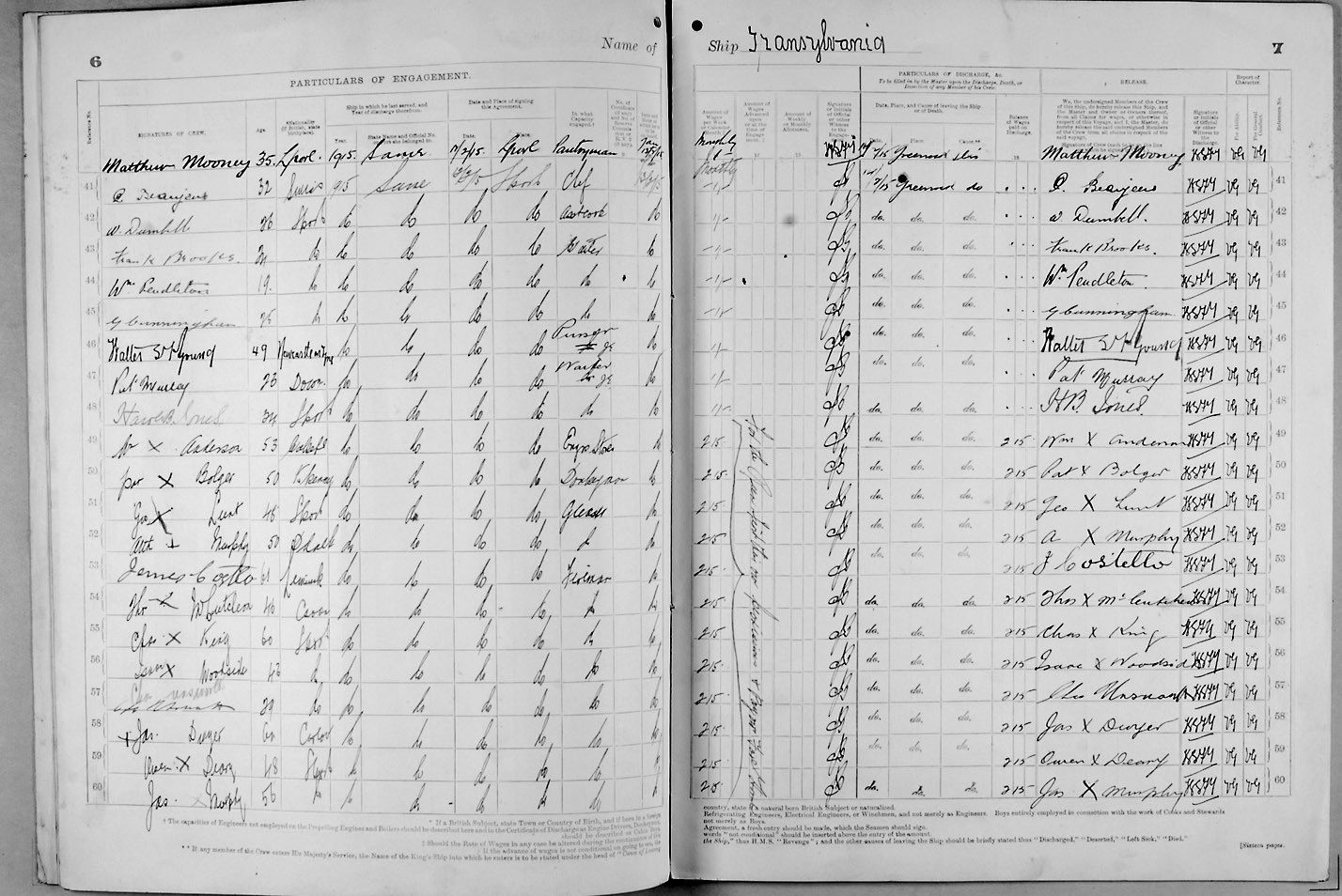 Crew list document for vessel 'TRANSYLVANIA'