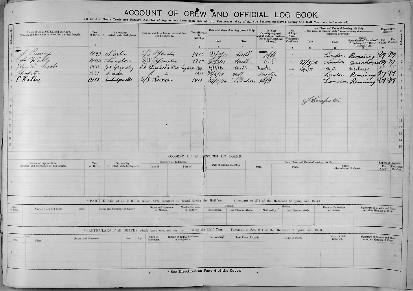 1915 crew list for the vessel 'ELIZABETH BROMLEY'