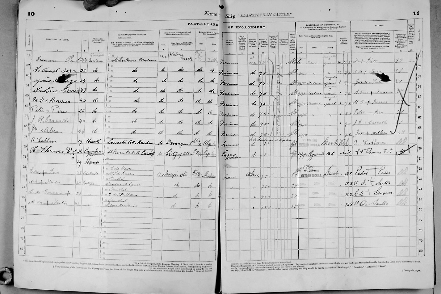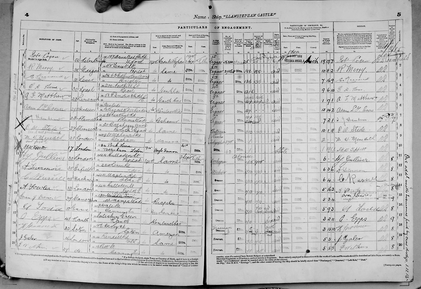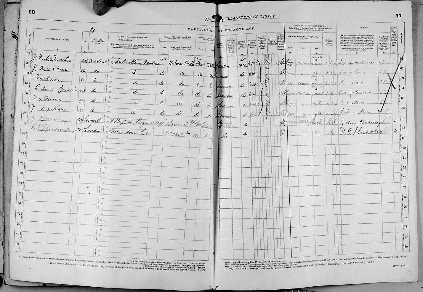 Crew list document for vessel 'LLANSTEPHAN CASTLE'