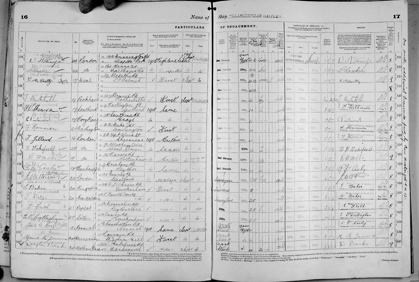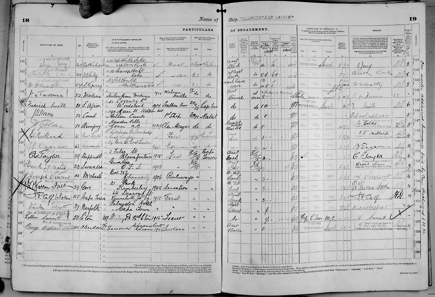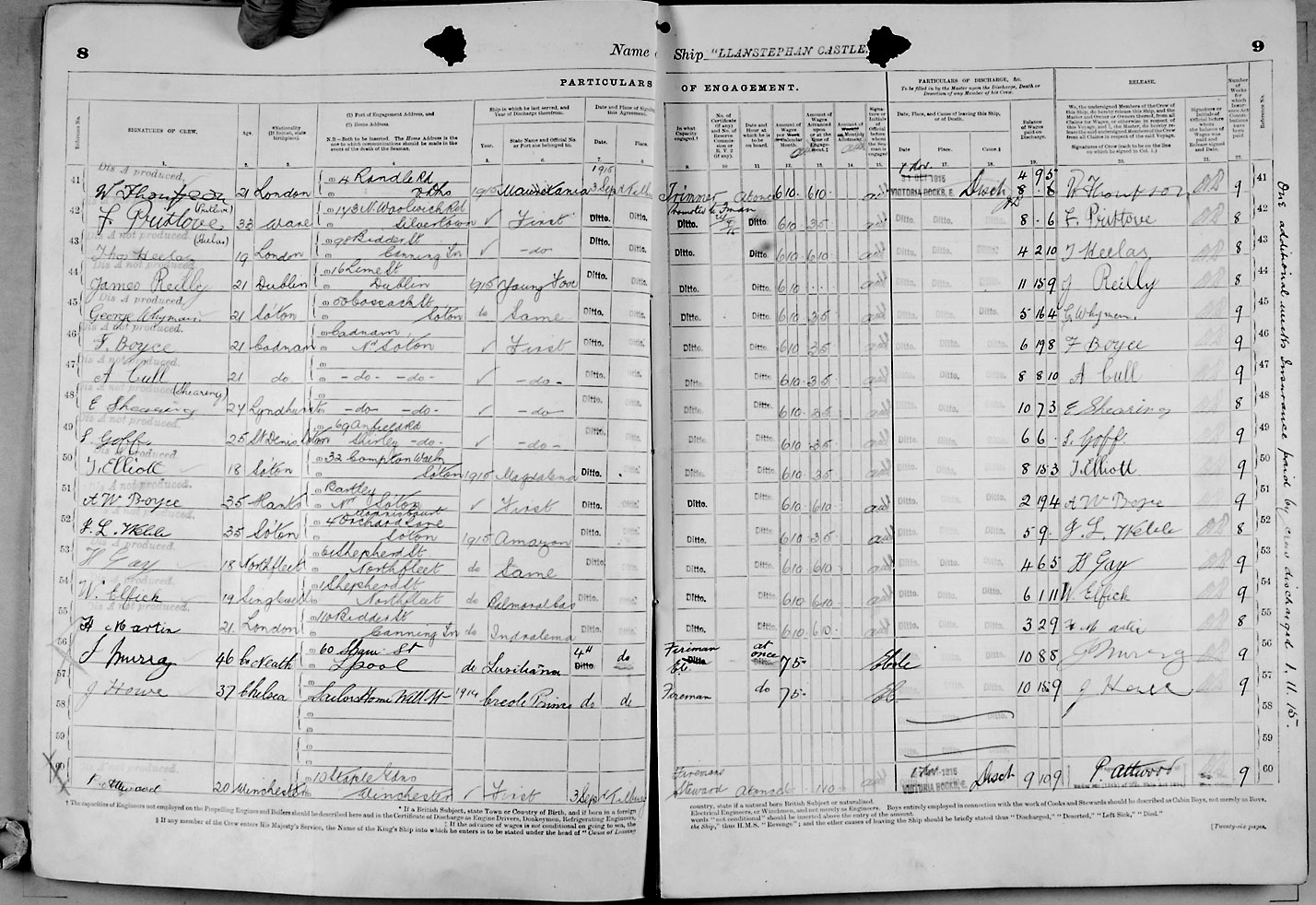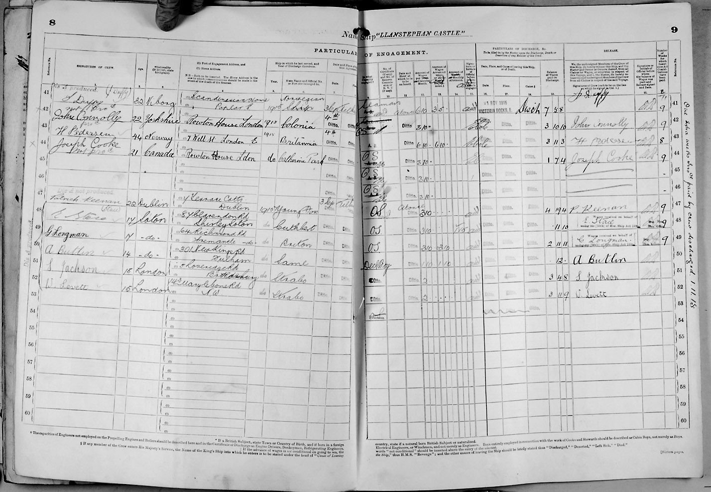 Crew list document for vessel 'LLANSTEPHAN CASTLE'