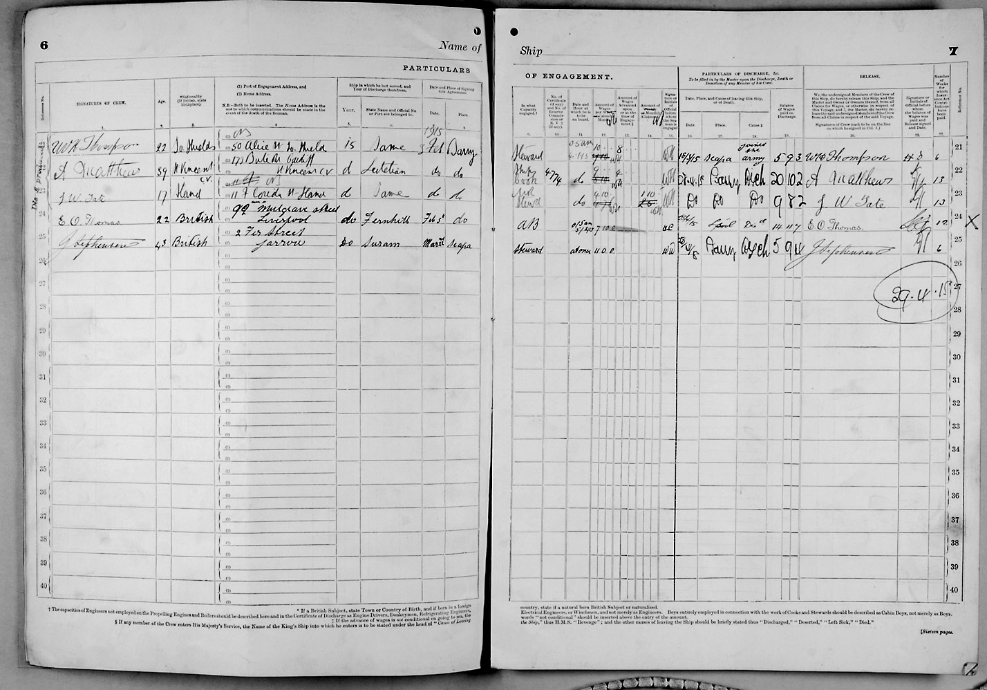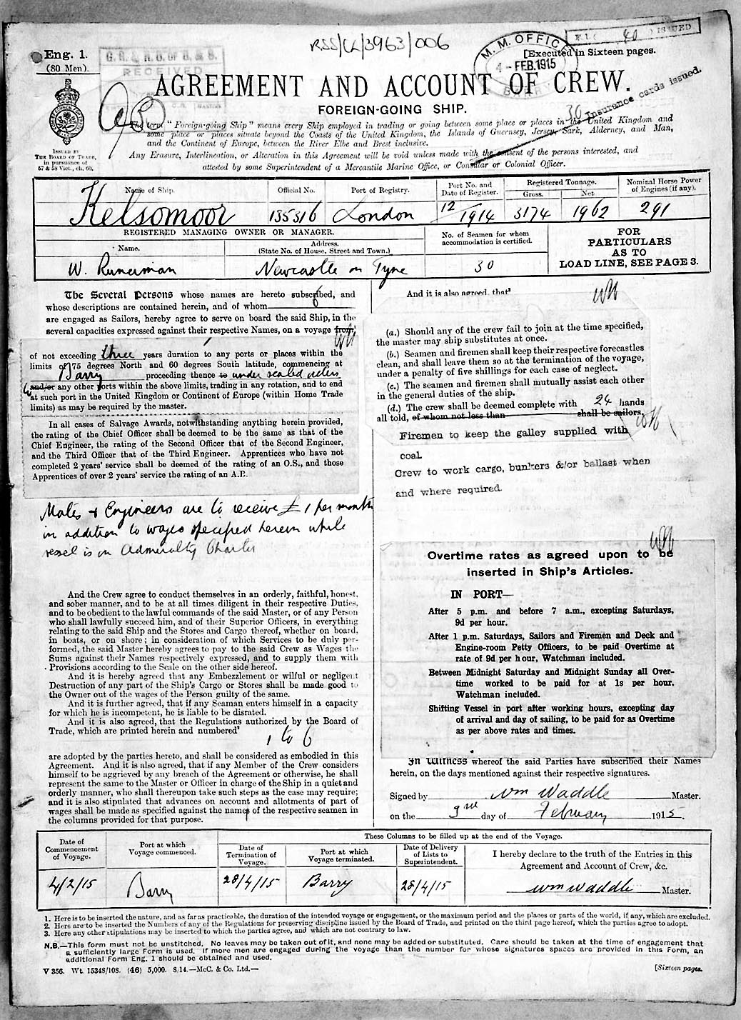 1915 crew list for the vessel 'KELSOMOOR'
