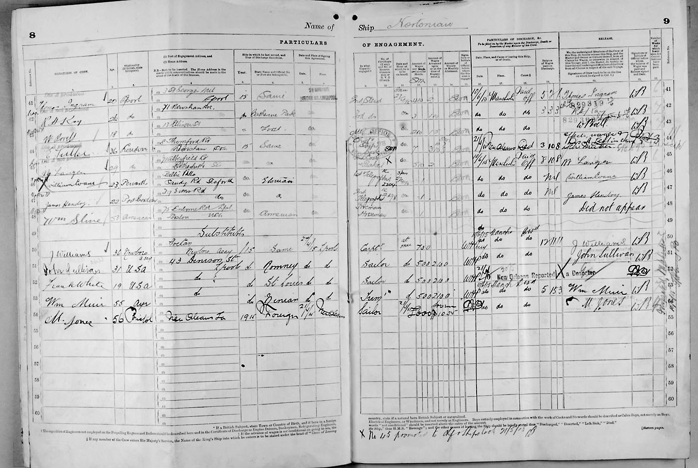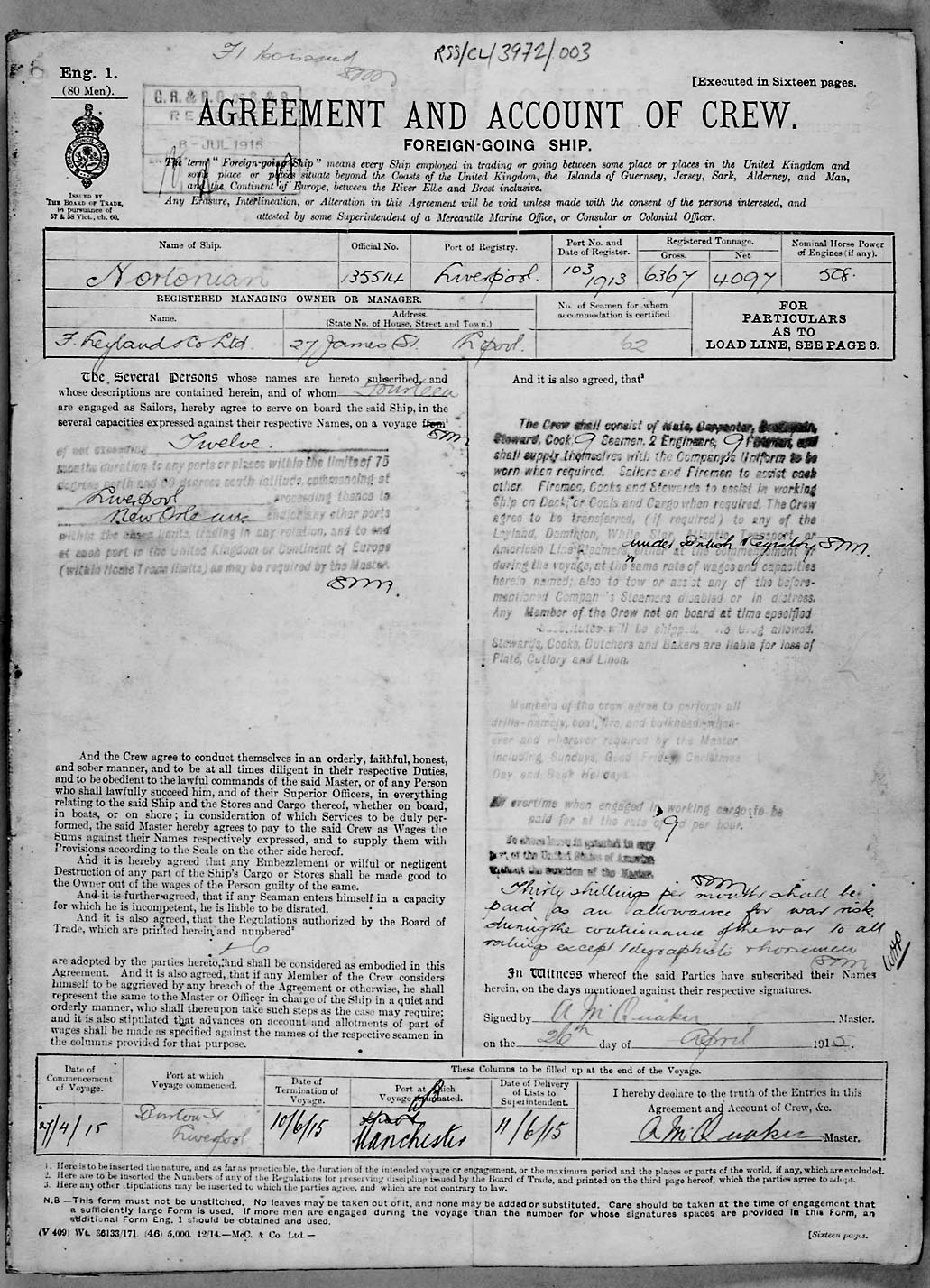 Crew list document for vessel 'NORTONIAN'