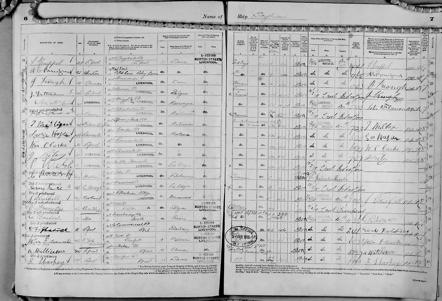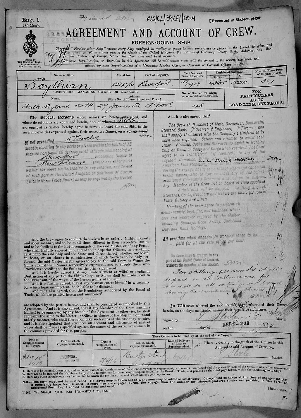 1915 crew list for the vessel 'SCYTHIAN'