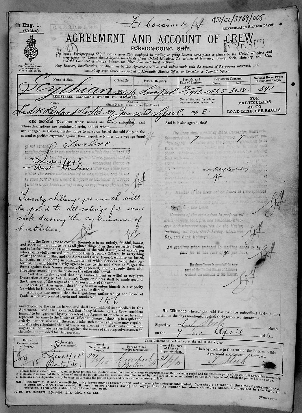 1915 crew list for the vessel 'SCYTHIAN'