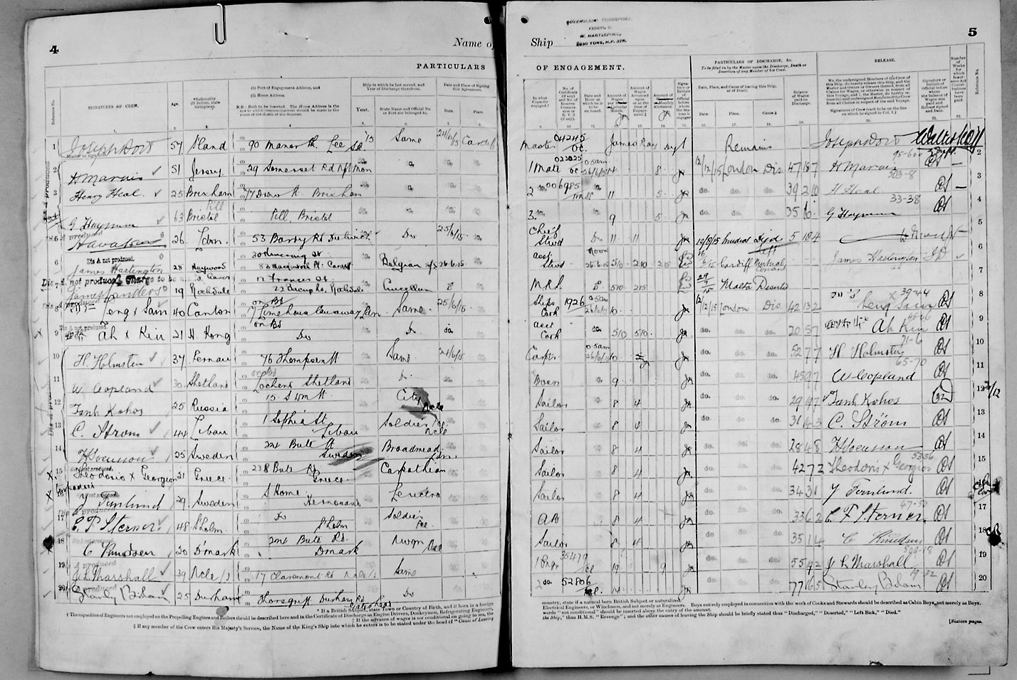 1915 crew list for the vessel 'QUEENSLAND TRANSPORT'