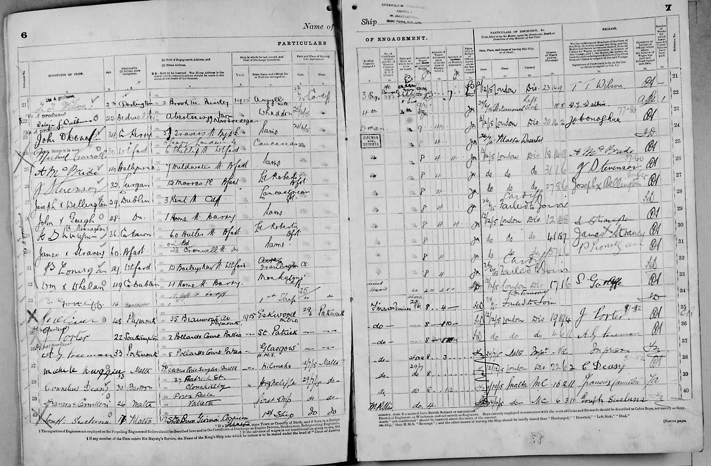 Crew list document for vessel 'QUEENSLAND TRANSPORT'